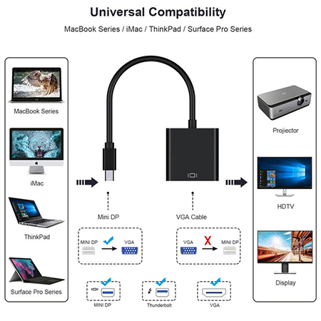 • Connect standard analog monitor, projector, or LCD that uses a VGA connector with the Mini DisplayPort to VGA Adapter