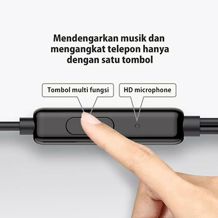 • Dibekali microphone dan tombol multifungsi untuk pengaturan volume dan menjawab/mengakhiri panggilan telepon