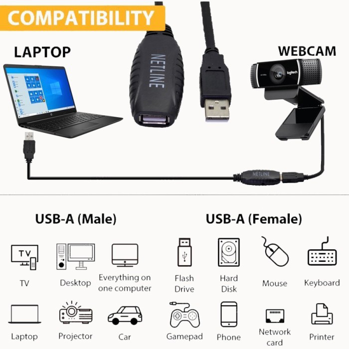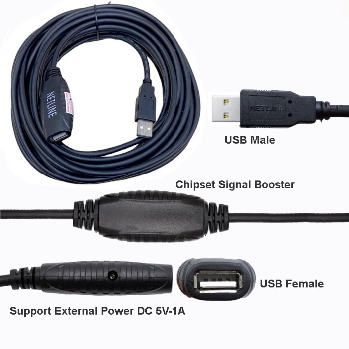 • Active USB extension cable, ensures good signal quality to meet USB specification