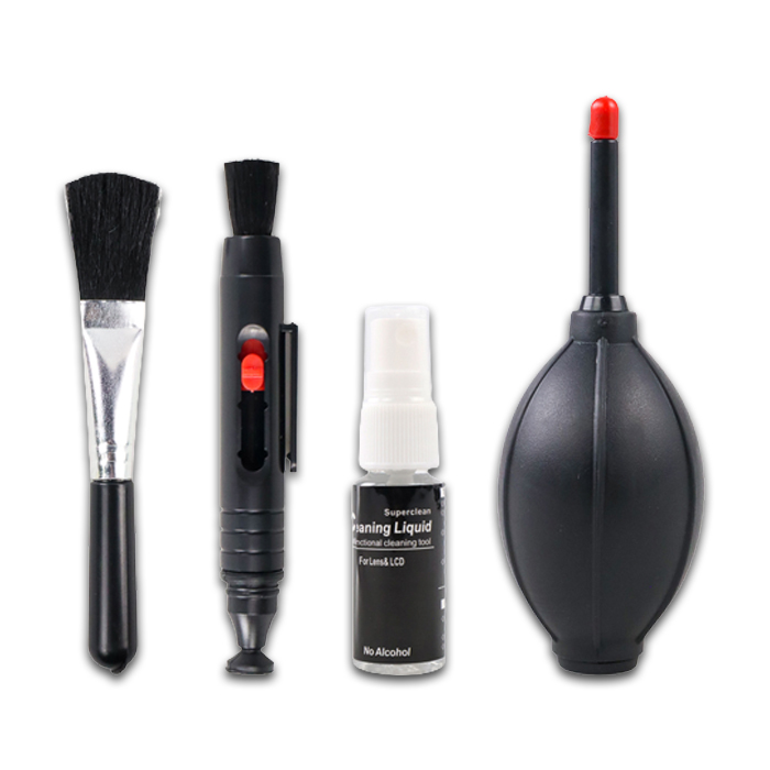 • Set Pembersih Kamera; Set pembersih untuk merawat kamera DSLR guna menjaga kualitas agar tahan lama. Set pembersih ini dapat Anda gunakan untuk membersihkan bagian-bagian lensa atau bodi kamera dengan lebih mendalam.