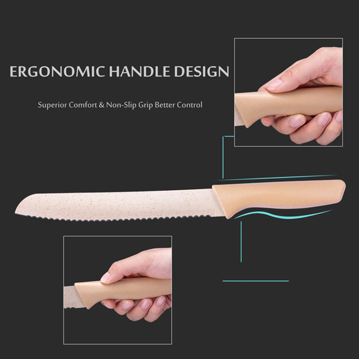 - Handle Ergonomis; Handle ergonomis dan desain yang elegan membuat set ini tidak hanya alat masak, tetapi juga bisa dijadikan untuk menambah nilai estetika dapur Anda. Pisau-pisau ini memberikan fleksibilitas dan presisi yang diperlukan untuk berbagai tugas, dari potongan halus hingga potongan tebal.