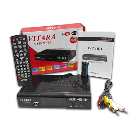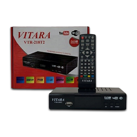Lain-Lain Item ID: #12164Set Top Box TV Digital Vitara VTR-21BT2Product Information:Berfungsi untuk menerima siaran UHF digital SVB T2 melalui antena UHF biasa/ UHF Digital, cocok bagi Anda yang wilayah nya sudah bisa menerima siaran digital. Fitur: Item DescriptionBerfungsi untuk menerima siaran UHF digital SVB T2 melalui antena UHF biasa/ UHF Digital, cocok bagi Anda yang wilayah nya sudah bisa menerima siaran digital. Fitur: