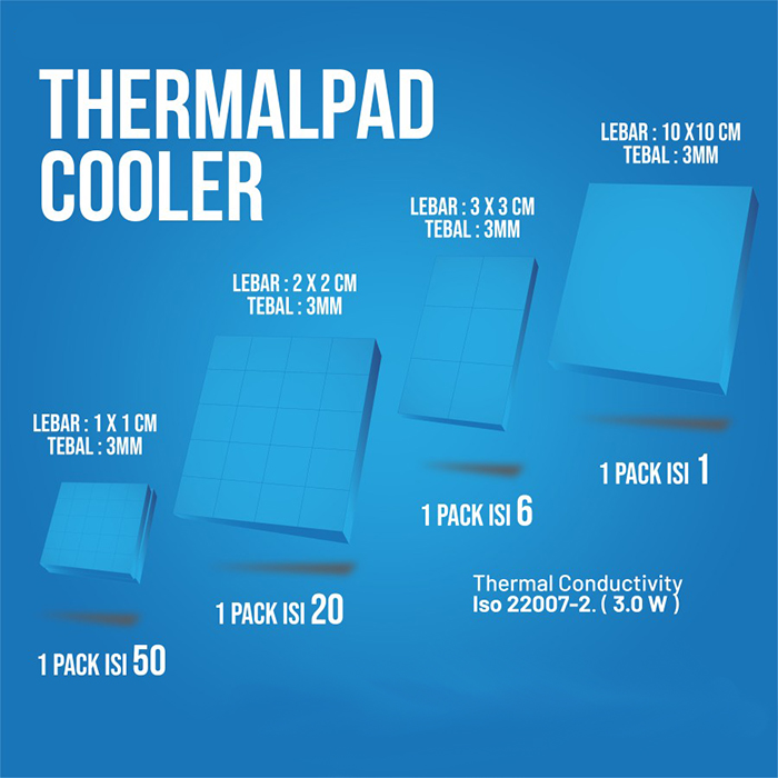 Aksesoris Komp Item ID: #13637Thermal Pad Silicone Heatsink 1x1x3mmProduct Information:Sebagai pengganti Thermal Pasta atau Thermal Glue dengan kualitas penghantar panas yang lebih baik, aplikasi untuk CPU, GPU, Chipset, Mosfet, IC, dan lain sebagainya. Spesifikasi: Item DescriptionSebagai pengganti Thermal Pasta atau Thermal Glue dengan kualitas penghantar panas yang lebih baik, aplikasi untuk CPU, GPU, Chipset, Mosfet, IC, dan lain sebagainya. Spesifikasi: